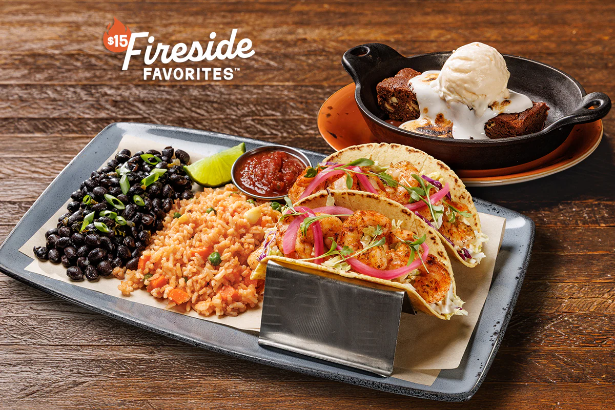 Corn + flour blend tortillas, lemon tartar sauce, pickled red onions, salsa, spanish rice + cilantro black beans on the side Served with a personal S'more Brownie Sundae or Banana Pudding.